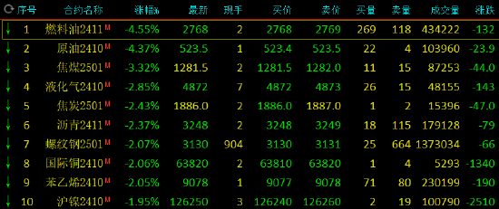 早盘开盘,国内期货主力合约跌多涨少,SC原油跌超4%,燃油跌近4%,焦煤跌超3%,焦炭、LPG跌超2%。涨幅方面,菜粕涨超5%,菜油涨超2%。