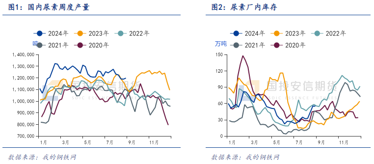 目前正处农需空档,主要需求在于秋季肥生产,对尿素需求量大幅减弱。前期秋季复合肥产能利用率提升缓慢,主要受复合肥成品销售较差影响,企业开工积极性大幅降低。部分大型企业为保障秋季肥供应,负荷有所提升,中小企业开工持稳为主,整体装置开工同比偏低。对于9月复合肥生产需求,部分贸易商表示下游复合肥企业库存高企,且当前生产进度已过半,对尿素采购需求预期减少;部分贸易商则表示复合肥需求不会减少,只会延后,后续将对行情产生一定支撑。但由于秋季肥以高磷肥生产为主,且截至目前下游厂家备货充足,相较于夏季高氮肥生产时期整体需求量偏低,我们认为复合肥对尿素行情的支撑预期逐步走弱。