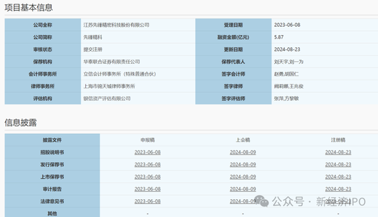 8月7日,江苏先锋精密科技股份有限公司在上交所科创般披露第二轮问询回复函,8月16日顺利过会,8月23日提交注册。