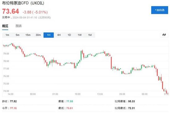 周二,国际油价大幅走低,布油抹去今年以来的所有涨幅。WTI原油日内跌幅达4.5%,报70.24美元/桶。布伦特原油重挫5%,报73.65美元/桶。消息面上,OPEC成员国利比亚央行行长表示,各派系接近达成协议,有望推动石油生产恢复。